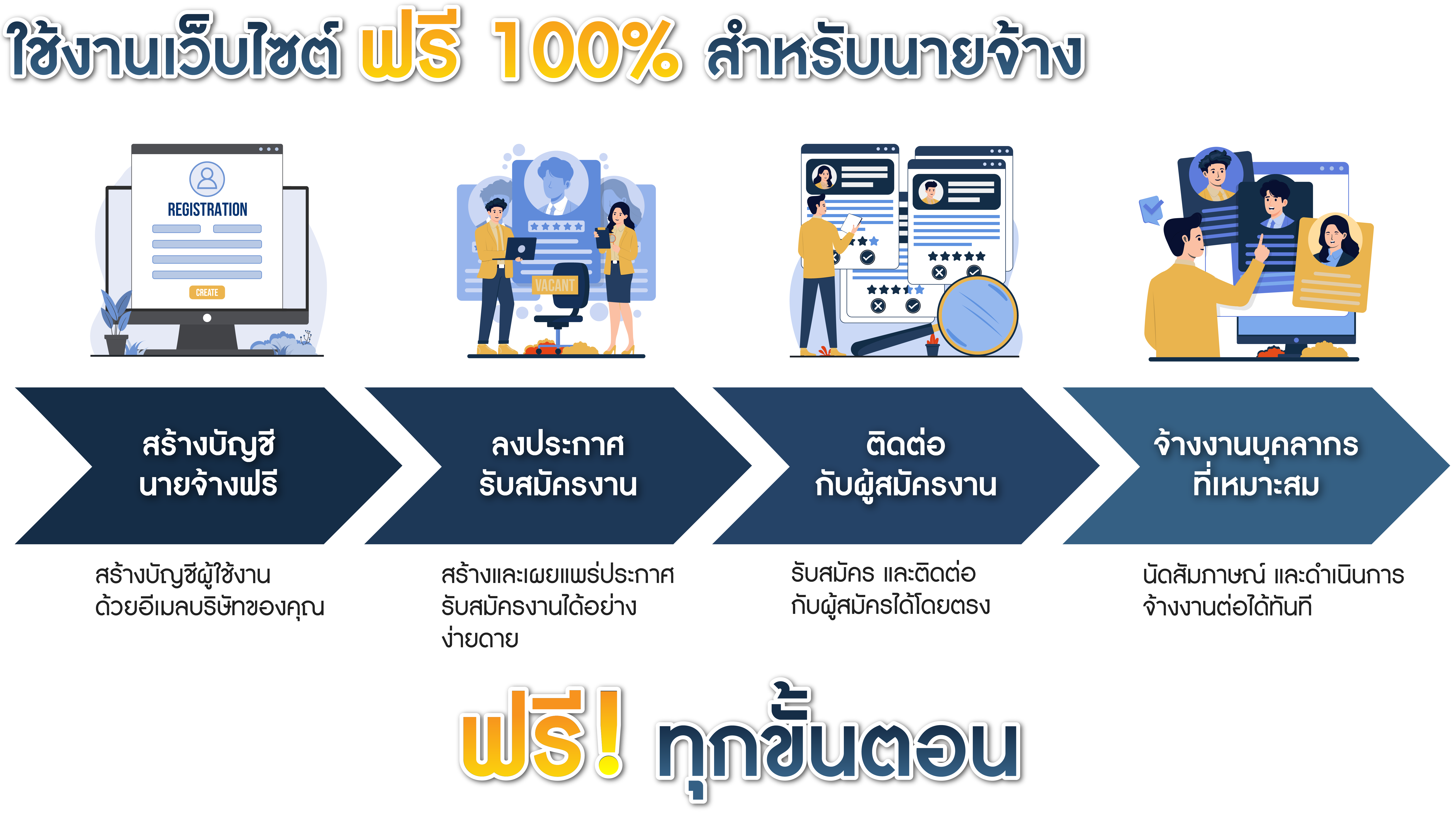 - เว็บไซต์ลงประกาศรับสมัครงานฟรี 100% ตั้งแต่โพสต์ตำแหน่งงานจนถึงการจ้างงาน